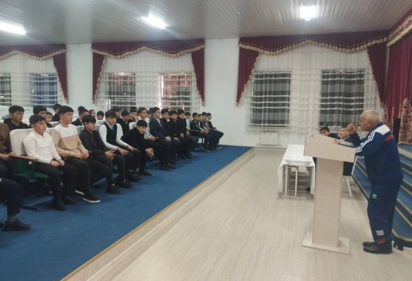 Жиналыста директордың оқу-ісі жөніндегі орынбасарлары Файзуллаев Т., Ахмедов И, Бекпулатов С., дене шынықтыру мұғалімі Каланбеков Х, АӘД жетекшісі Бакиров М. қатысып жасөспірімдер арасында қылмыс пен құқықбұзушылықтың алдын алу туралы оқушылармен ой бөлісті.